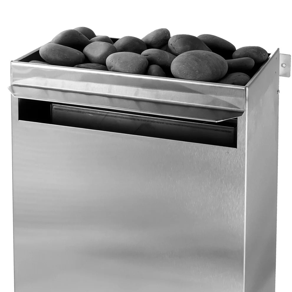 Scandia’s traditional Finnish electric sauna heaters are expertly crafted for use in cedar sauna rooms. With their sleek, compact design made of 100% stainless steel, these heaters combine aesthetic appeal with practicality. Featuring convection-style airflow, the wall-mounted unit is hardwired directly into the building's electrical system. It comes with an elevated rock tray that prevents water from damaging the unit. Designed for high-temperature applications, the heater includes all necessary wire connections and supplied leads.