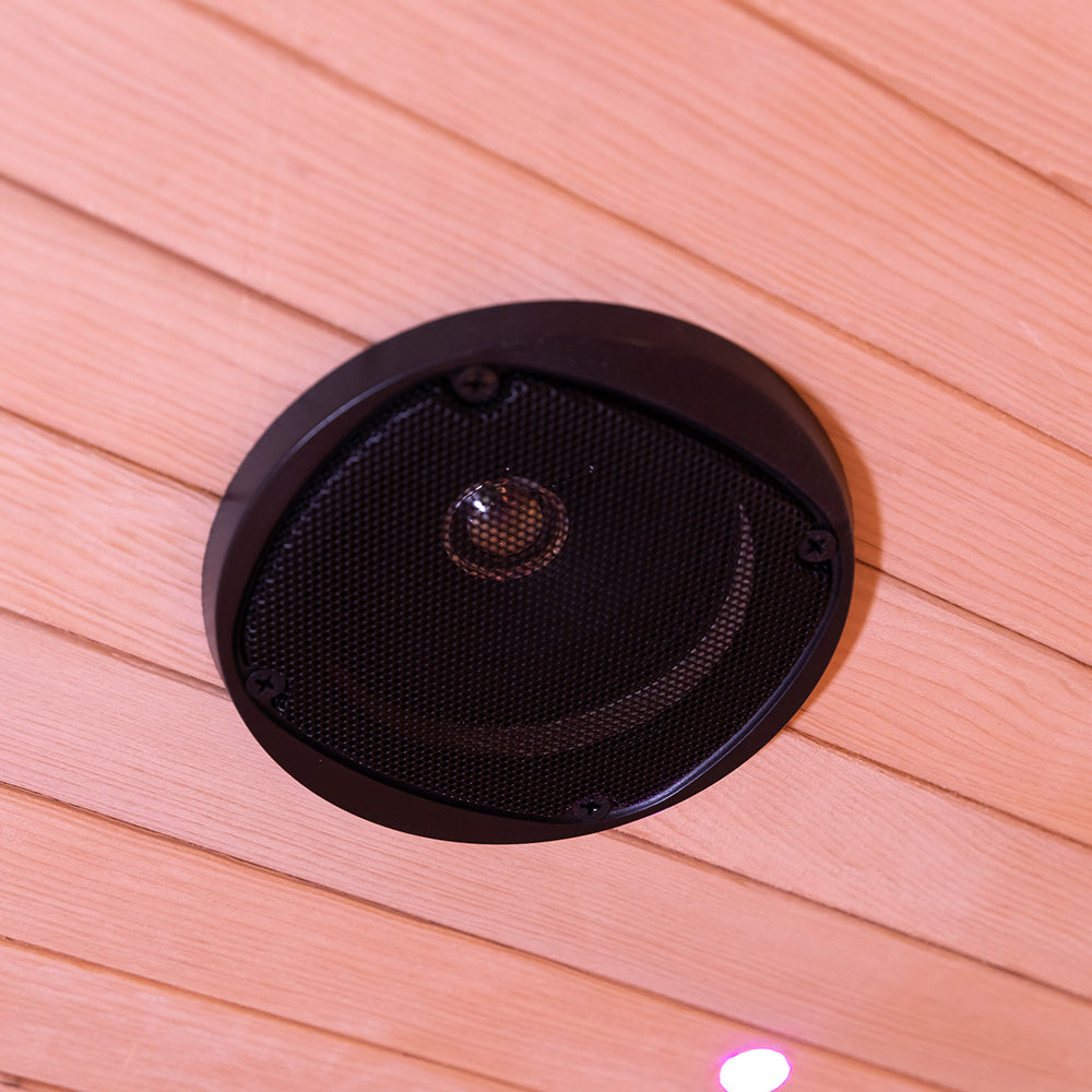 Enjoy chromotherapy lighting with seven therapeutic color options designed to reduce stress, balance mood, and enhance relaxation during your sauna sessions.