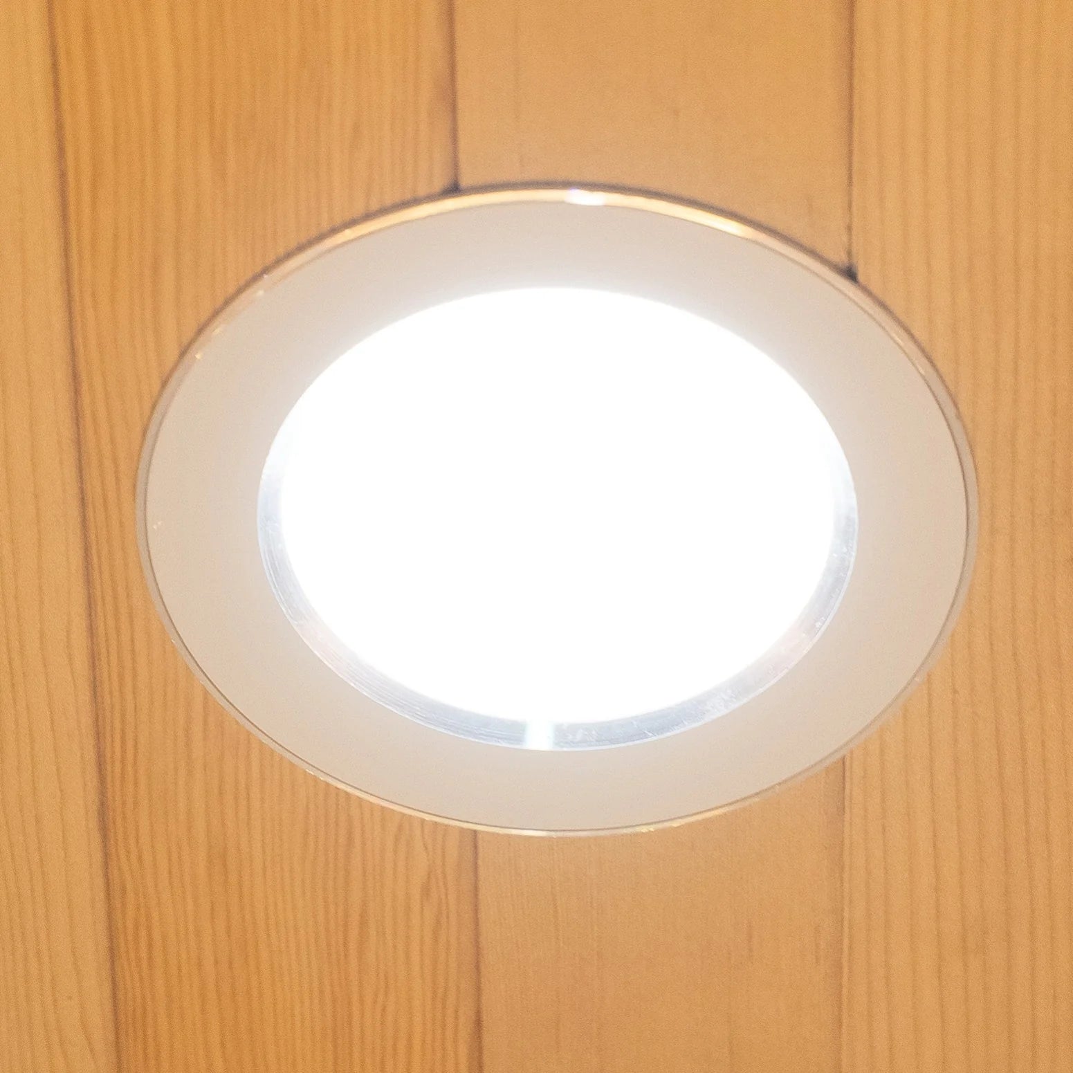 Enjoy chromotherapy lighting with seven therapeutic color options designed to reduce stress, balance mood, and enhance relaxation during your sauna sessions.
